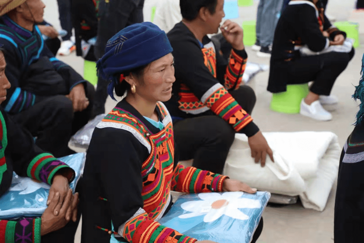 (收到捐赠物资的美姑群众)