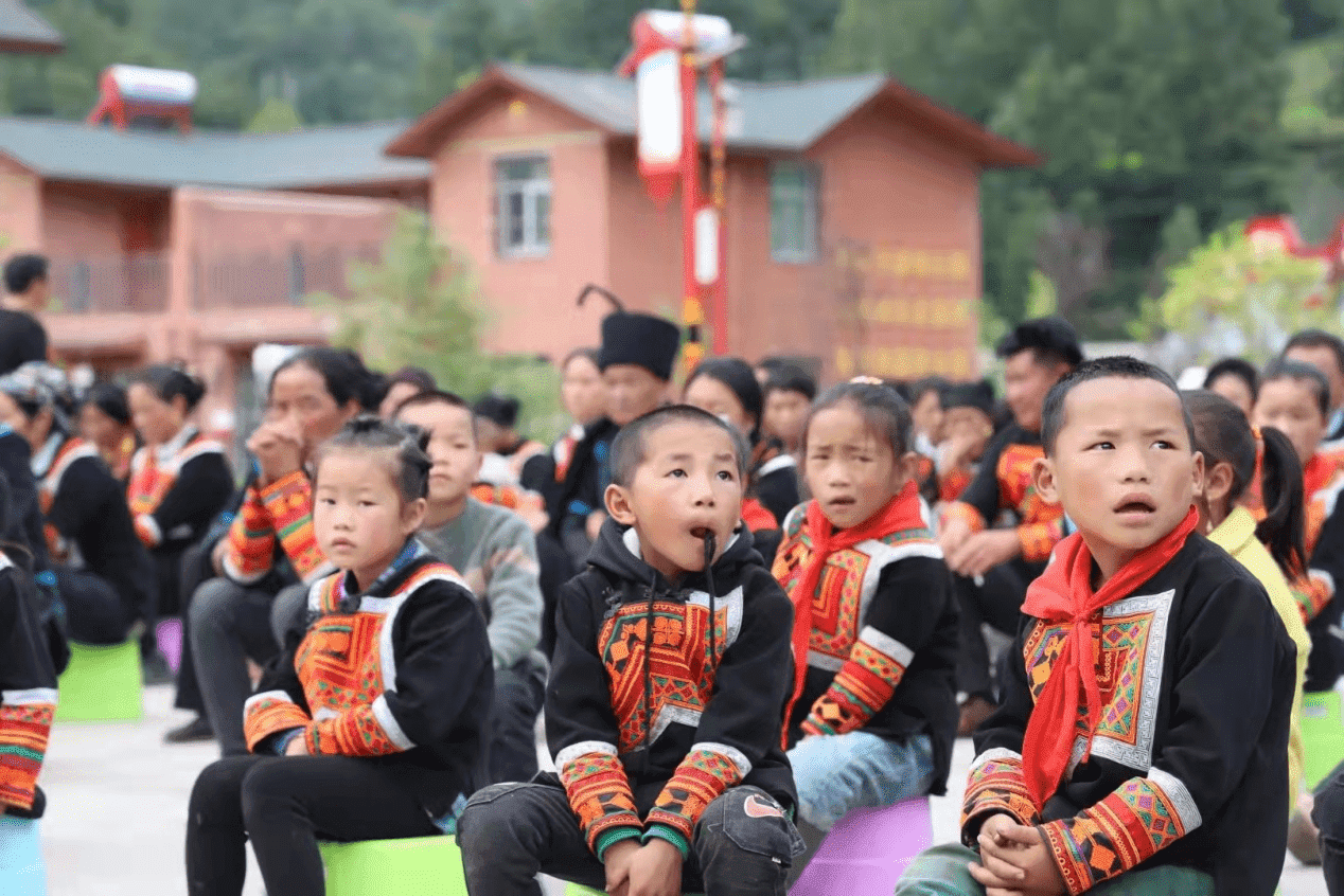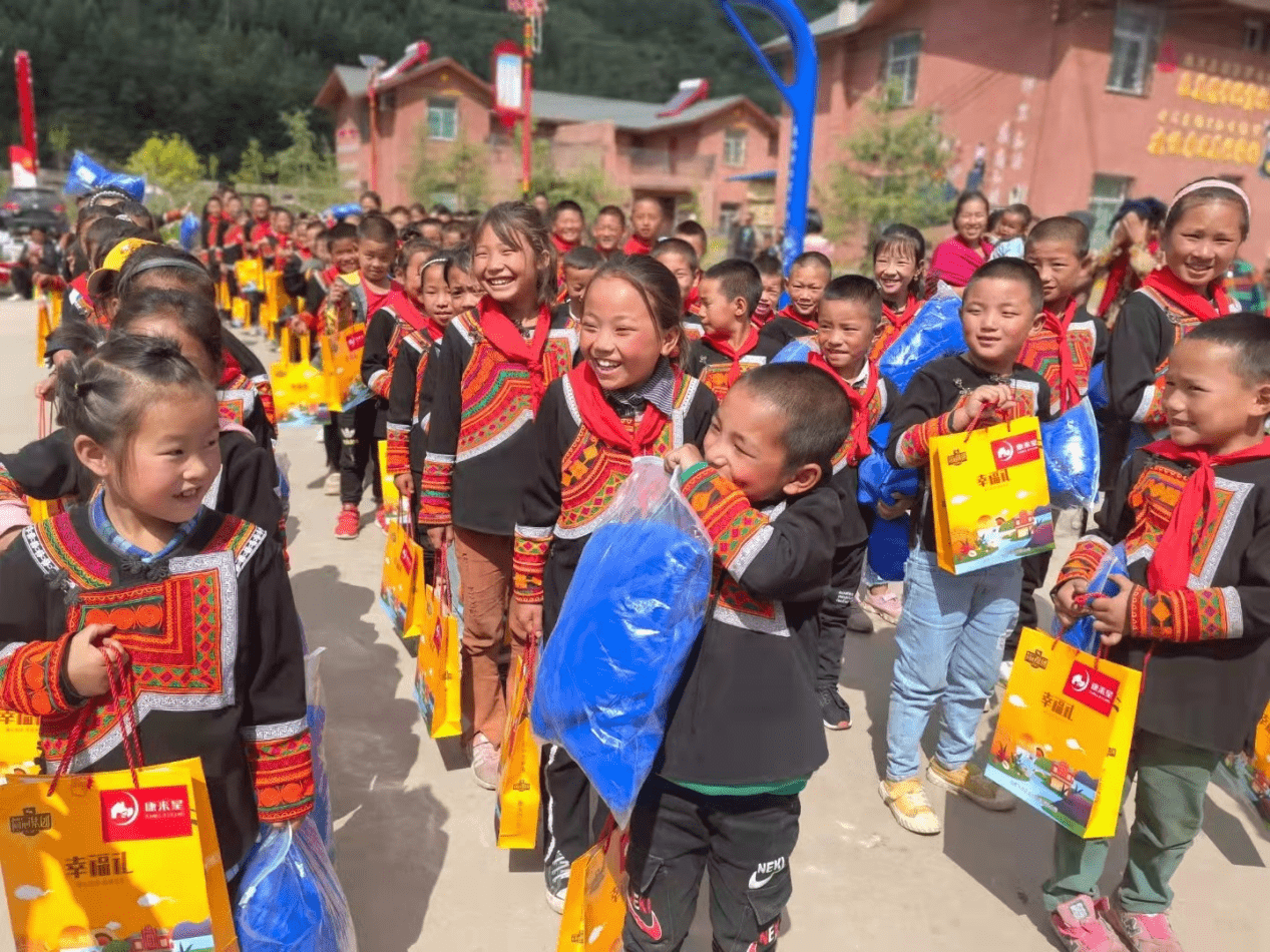 (收到礼物的美姑孩子们喜笑颜开)