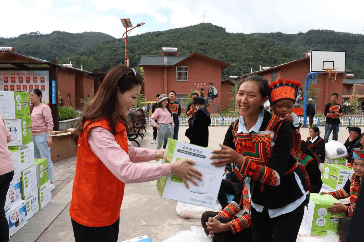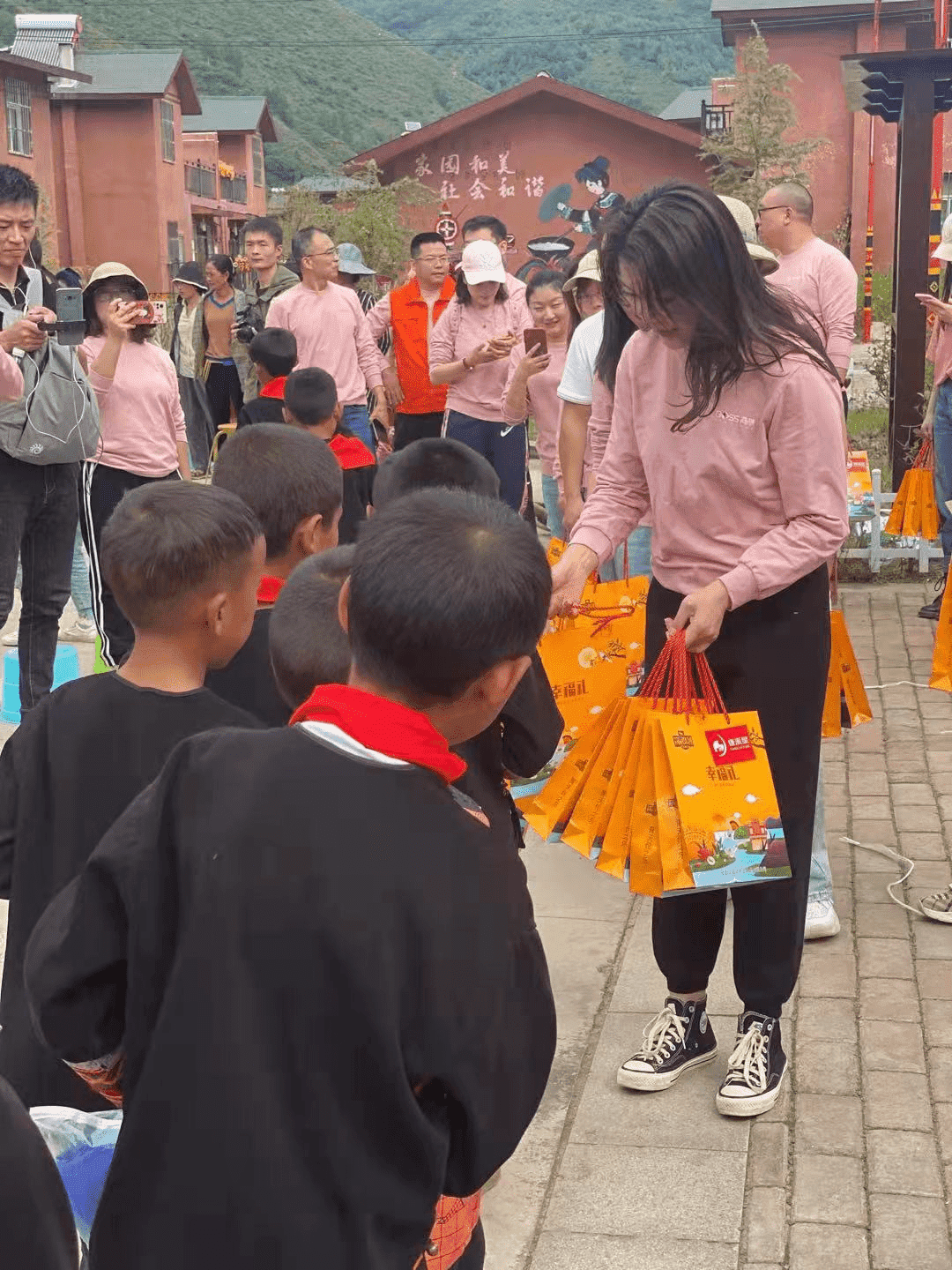 (公司副总经理吴艳平女士向美姑的孩子们赠送礼物)